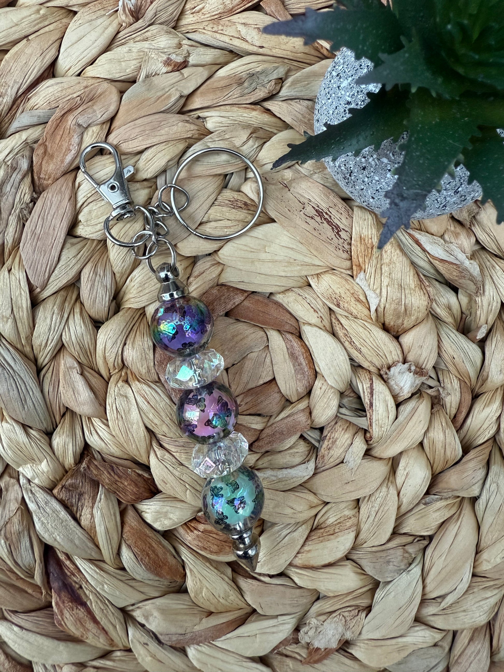 Add a touch of shimmer to your everyday with the Butterfly Sparkle Beaded Keychain. Featuring iridescent butterfly-patterned beads paired with faceted crystal-style accents, this keychain shines beautifully in the light. Sturdy and stylish, it’s perfect for keeping your keys secure, decorating your handbag, or clipping onto a backpack. A must-have accessory for anyone who loves a bit of sparkle and whimsical detail.
