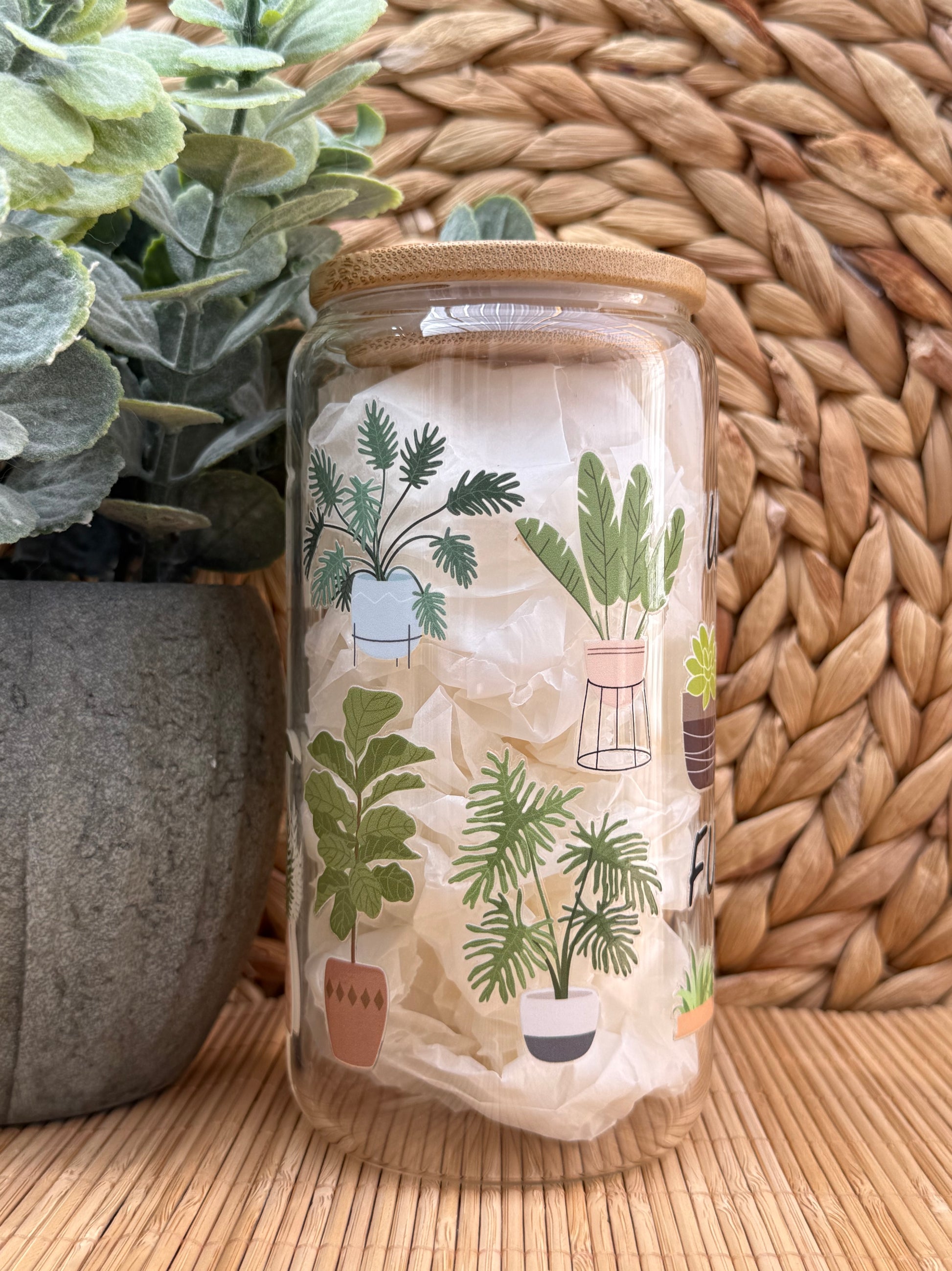 Garden Glass Tumbler 8 - Lid & Glass Straw 16oz (455ml)
