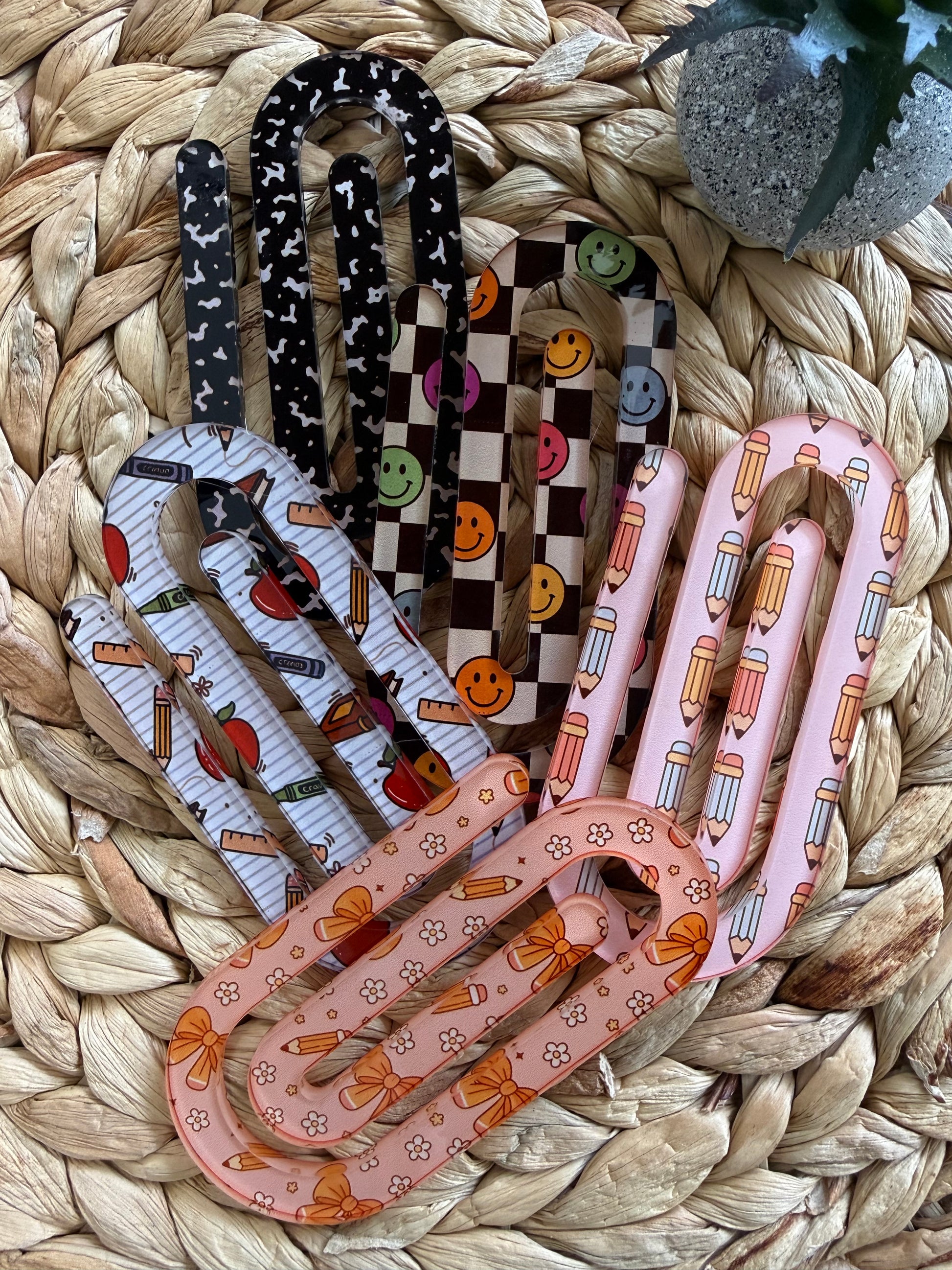 Add a pop of joy to your reading! This oversized paperclip bookmark features a cute smiling charm that keeps your page in place while brightening your day. Perfect for books, journals, planners, or gifting.